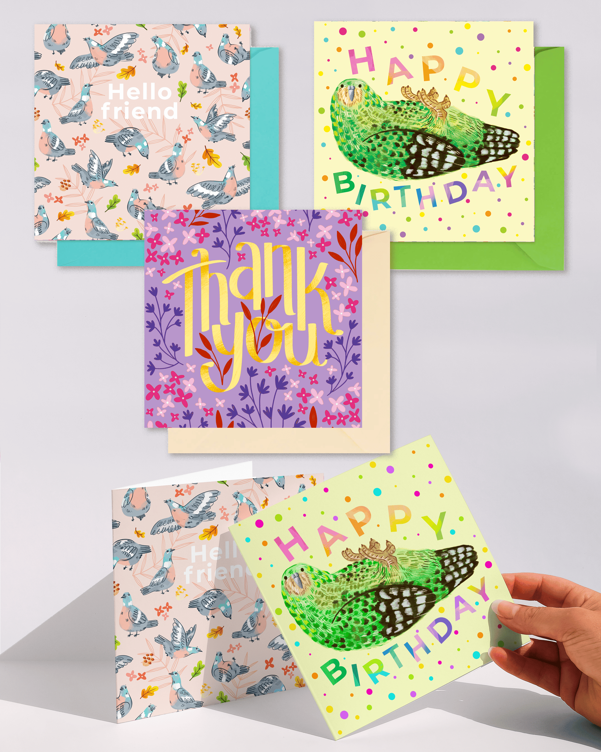 Illustrated by Natelle, these large 15cm square greetings cards with matching colourful envelopes make perfect happy mail to brighten someone's day!